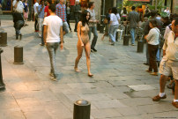 She was all the time nude, without exception; Her clothes were carried by a team member.